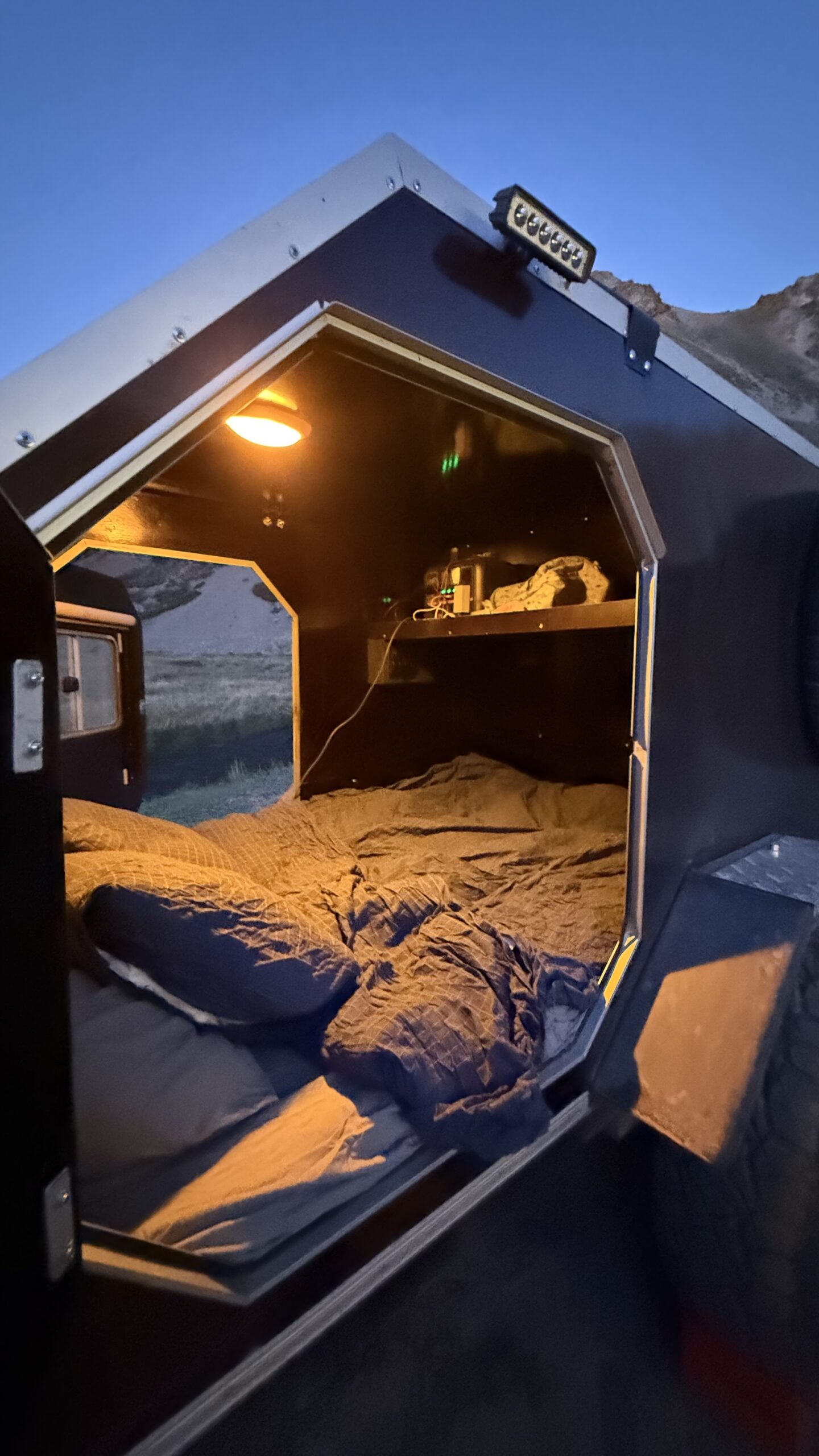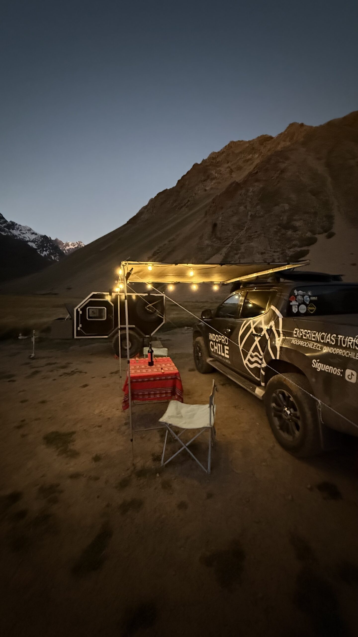 Imagine-se aninhado em um de nossos mini-campers exclusivos 4x4, seu refúgio confortável e seguro no coração da montanha. Seu traslado desde a acomodação em Santiago é o prelúdio de uma estadia de uma noite onde cada detalhe é uma homenagem ao conforto.